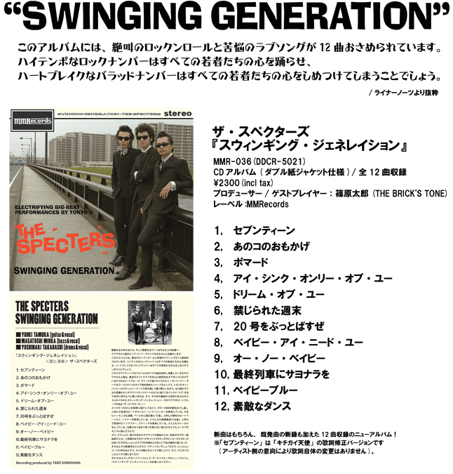 | THE SPECTERSのホームページでは、こちらの商品の通信販売の受付は行っておりません。 通販での購入をご希望される場合は、AMAZON、タワーレコード、HMV、新星堂をはじめ各オンラインストア、 または、MMRecordsのほうにてご注文・お求めくださいませ。 |